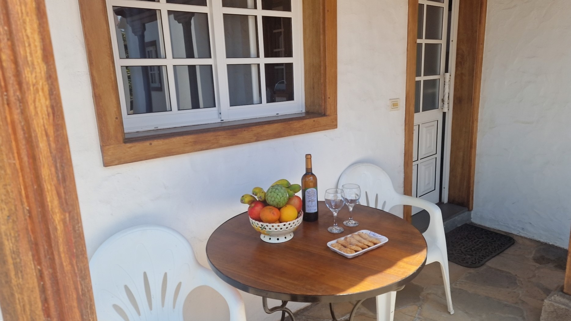 This newly built house, with a beautiful sea view is situated next to Casa Ariadna Grande. The property is discrete and independent, with its own access. This Casa Rural has one bedroom, living room with WiFi, satellite TV and radio, an integrated kitchen, as well as the bathroom on a living area of 55 m². The rooms are ideally arranged in an angle, which closed to the north and open to the south, forms a protected, roofed outside sitting area. The terrace is made of natural stone and framed by slender garden palms and little fruit trees. On the terrace there is a beautiful brick-built barbecue. The pine furniture and wood beamed ceilings generate a cosy atmosphere. The windows in the living room reach from the floor to the ceiling, so that the house is very airy and friendly. The hosts are very attentive, and the landlady works as a cook and receives her guests with fruit and wine. A small Pool and an outdoor shower for refreshment have been built recently. From here many beautiful hiking trails of the Tijarafe region can be explored. The romantic northwest of La Palma with Las Tricias and Garafia is not far away. On the other hand the popular beach of Tazacorte is easily accessible by car or bus within 30 minutes.