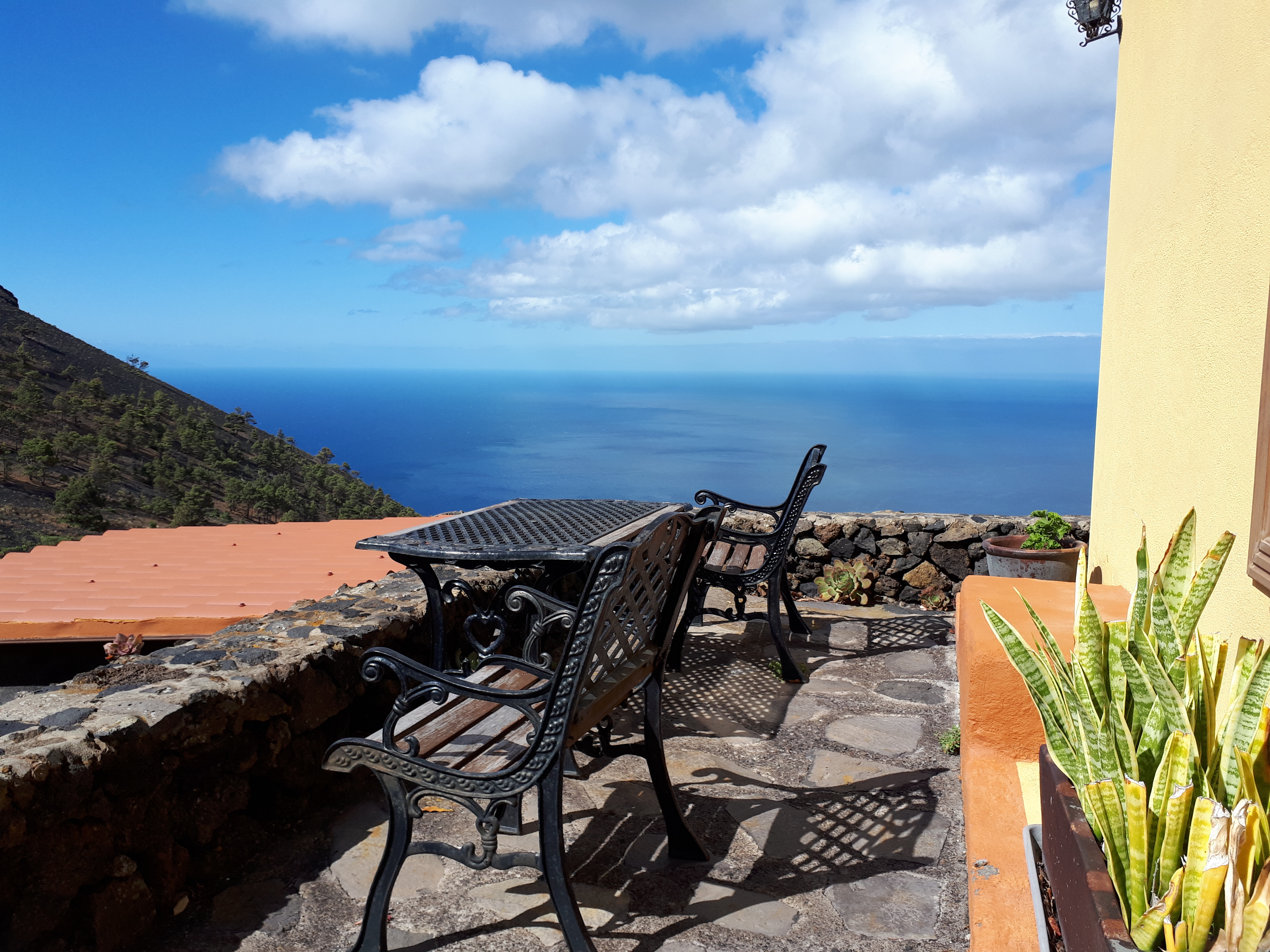 Die beiden gepflegten, sorgfältig restaurierten kanarischen Häuser und der große Garten mit Blumen und Kakteen, mit Eidechsen und Singvögeln, mit Obstbäumen und Gemüse- und Kräuterbeeten... - ein guter Ort, um sich im Urlaub selbst zu versorgen, zu kochen, entspannt auf der Terrasse zu liegen und dabei einen atemberaubenden Ausblick hoch über dem Atlantik zu haben. Genau richtig für diejenigen, die gerne direkt vom Haus aus loswandern und abends zurückkommen, um auf der Bank an der warmen Hauswand die Stille und die Abendsonne über dem Meer zu genießen und den Turmfalken zuzuschauen.