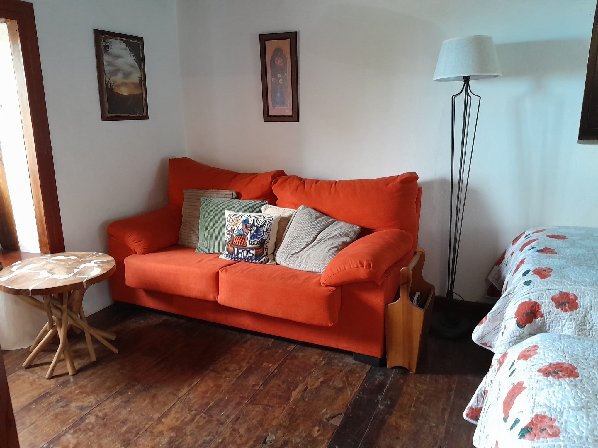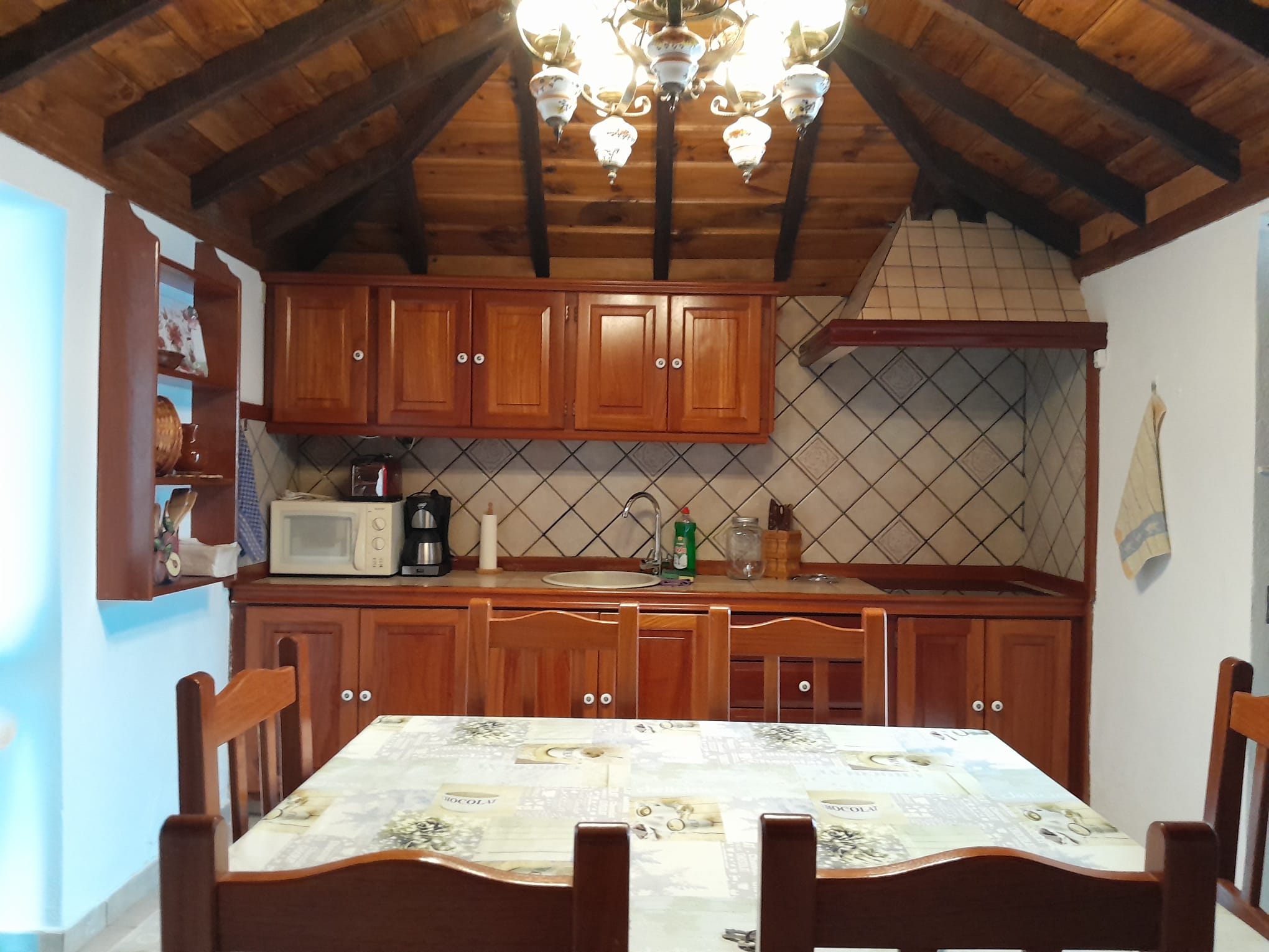 In dem idyllischen Weiler El Castillo liegt das original erhaltene 50 qm große Landhaus, seit mindestens fünf Generationen im Familienbesitz. Alte Gerätschaften an der Wand, Truhen und Fässer zeugen von 150 Jahren Geschichte. Die dicken Natursteinmauern, schönen alten Holzbalkendecken und glänzenden Holzfußböden strahlen Geborgenheit aus. In einem der beiden Schlafzimmer stehen behagliche Landhaussessel und der Satelliten-TV. Von der gemütlichen Küche mit großem Esstisch und Radio geht es hinaus auf einen überdachten Sitzplatz mit Grillhäuschen. Über das unbestellte Feld hinweg blickt man zwischen Feigen, Birnbaum und Mandelbäumen hindurch auf das blaue Meer. Hier hat man Ruhe und Raum, hier kann man Mensch sein. Ringsum lädt das magische Garafia zum Wandern ein. Die Dämmerstunden und sternenklaren Nächte an diesem Ort sind sagenhaft schön. Einen kleinen Tante-Emma-Laden sowie ein Restaurant findet man in Las Tricias, nur 15 Autominuten entfernt. Nach Puntagorda sind es etwa 25 Autominuten. Fragen Sie gerne nach einem Angebot für Langzeitmiete.